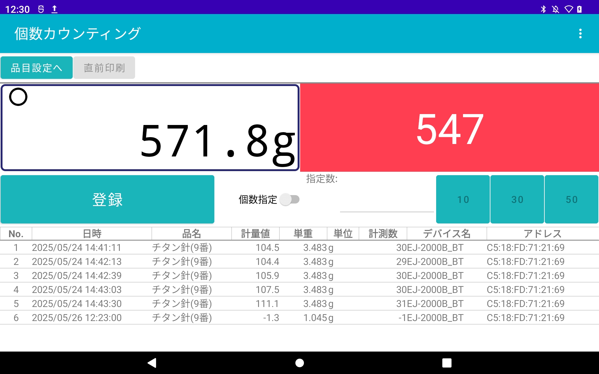 単重登録(品目登録):なし→「個数指定」:なし →ハカリの上にものを載せる →重量値と謎の個数が表示される